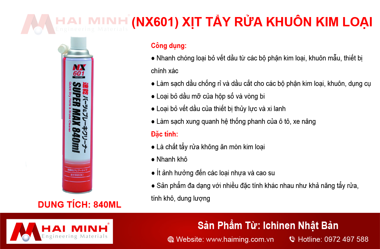 - Dung dịch làm sạch chống gỉ chi tiết máy 00601 - NX601 là chất tẩy rửa hóa học có độc tính thấp không cần áp dụng các quy tắc phòng chống các dung môi hữu cơ độc hại