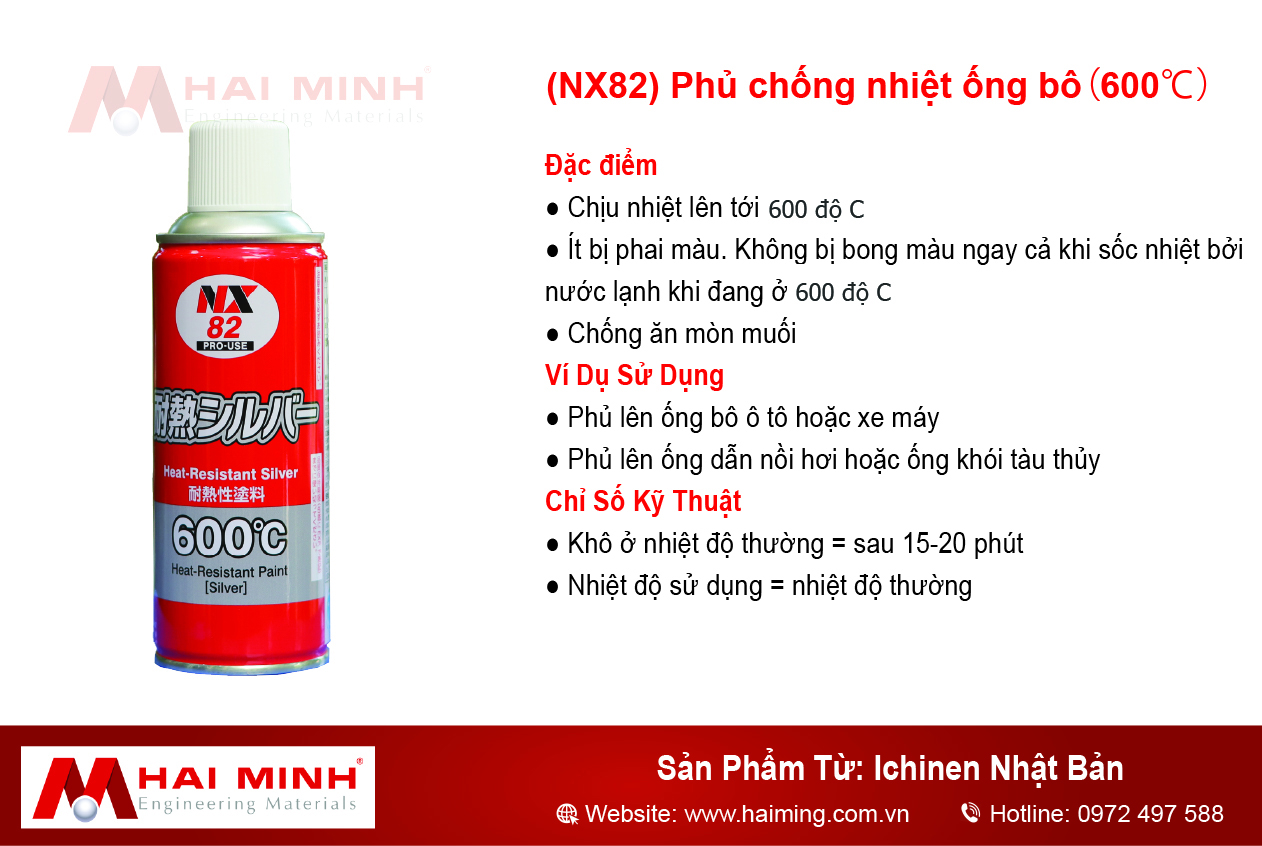 Sơn chịu nhiệt màu bạc 000082 (NX82) là sản phẩm chuyên dụng có khả năng chịu nhiệt lên đến 600°C, giúp bảo vệ bề mặt kim loại khỏi nhiệt độ cao, oxy hóa và các tác động môi trường khắc nghiệt. Với công thức đặc biệt, sơn NX82 không chỉ mang lại độ bám dính cao mà còn tạo lớp phủ bền đẹp, tăng tuổi thọ cho vật liệu.